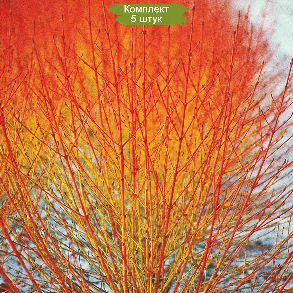 В комплекте поставляется 5 саженцев, готовых к высадке в открытый грунт. Превратите ваш сад в настоящее произведение искусства с дереном красным Мидвинтер Фаер!