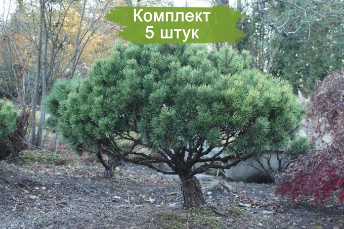 Приобретите набор из 5 саженцев сосны горной, каждый из которых достигает в высоту от 100 до 150 см. Эти молодые деревья идеально подходят для создания живописных ландшафтов, укрепления почвы и создания тенистых уголков на вашем участке.